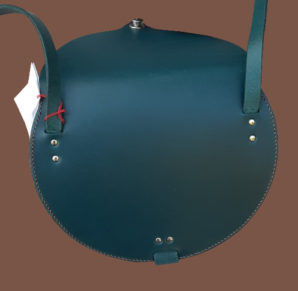 Muse est fermé par un bouton à ressort en extérieur. Une couture "sellier" réalisée à la main lui donne une allure moderne. L'assemblage est à bords francs, finition sellier.