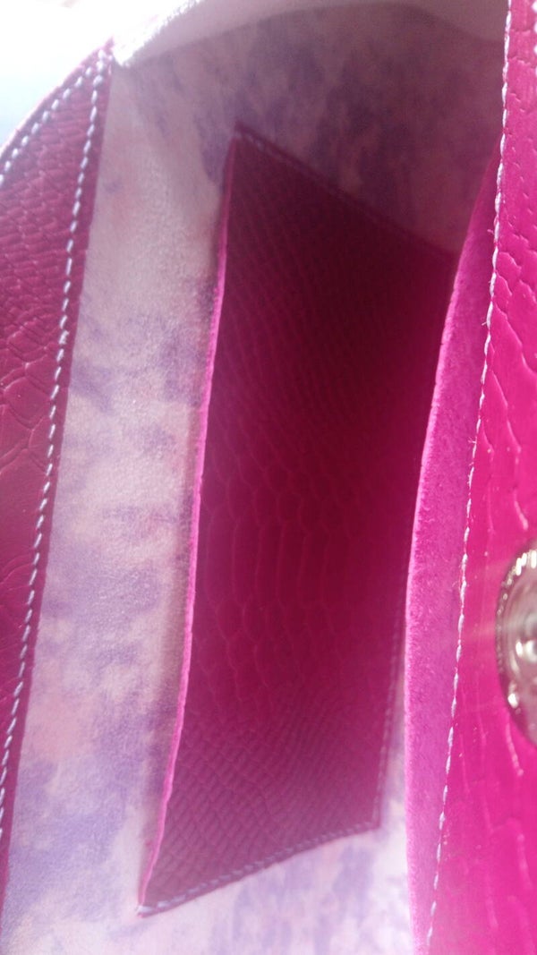- Pochette demie lune "fuschia" en cuir de vachette façon serpent,